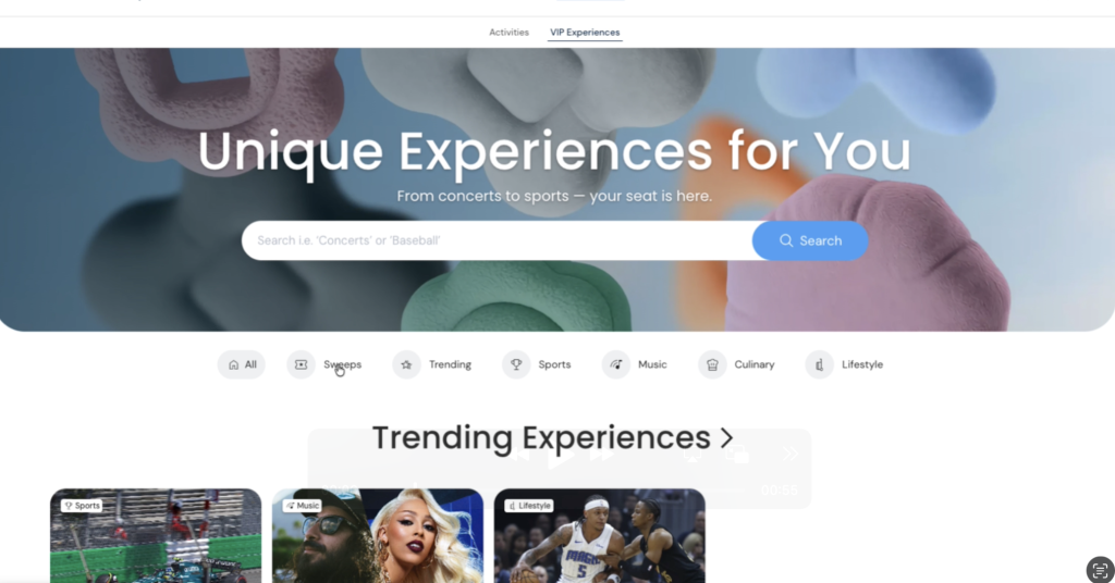 - Click on “VIP Experience” in the menu, then select “Sweeps.”
