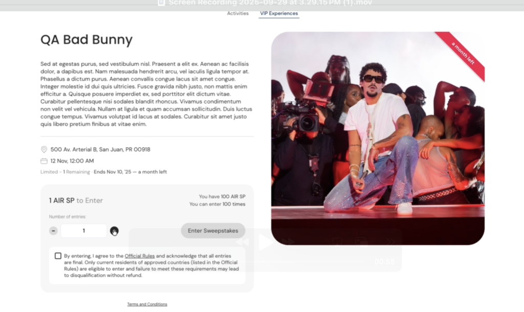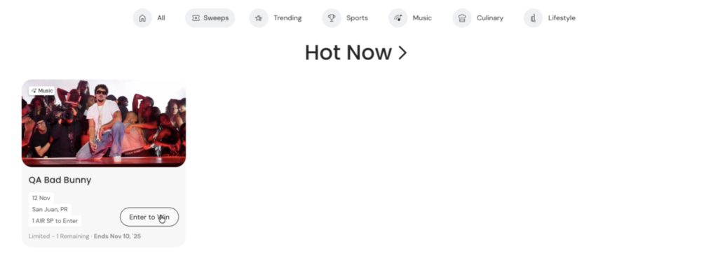 The AIR Shop offers time-sensitive sweepstakes that provide users with the opportunity to enter and potentially win real-world prizes using AIR SP, the platform’s reward currency.