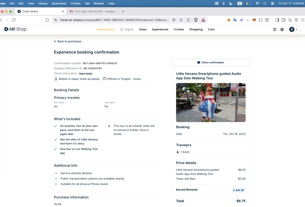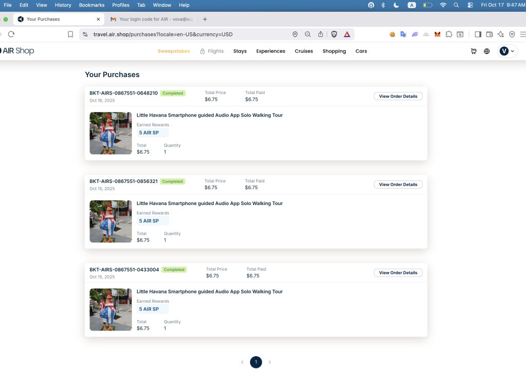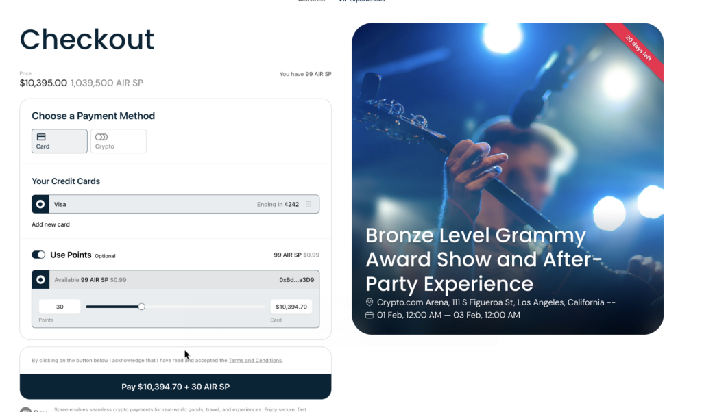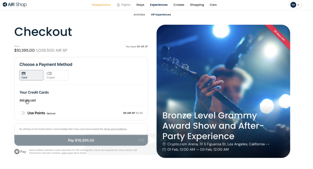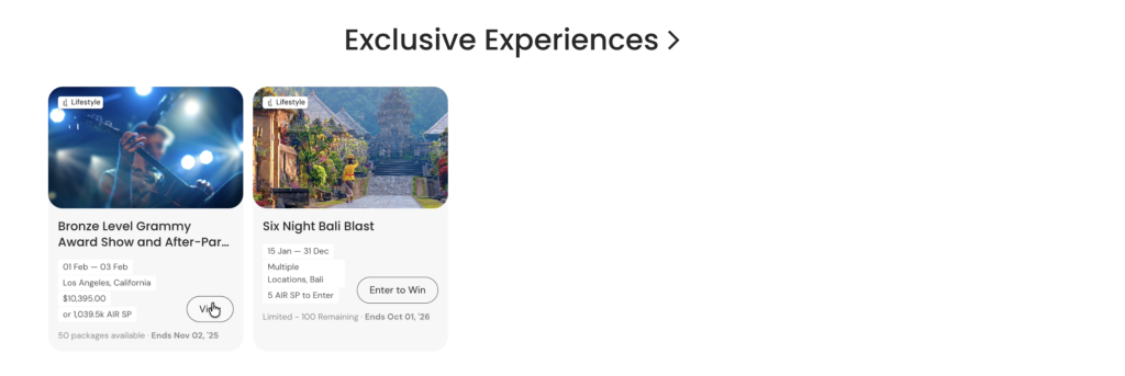 In this guide, we’ll walk you through how to purchase an exclusive experience using a mixed payment method (AIR SP + credit card) — and how to earn AIR SP from your purchase.