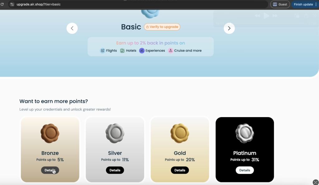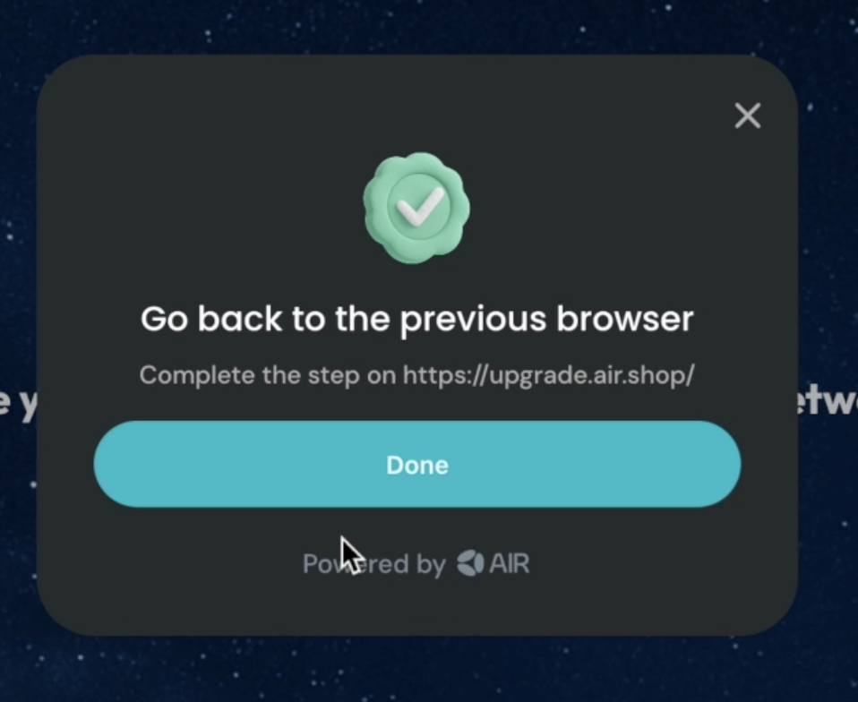 After completing the verification, click “Done” to return to the AIR Shop platform. Here, you can confirm your updated tier status and check the new benefits you’ve unlocked.